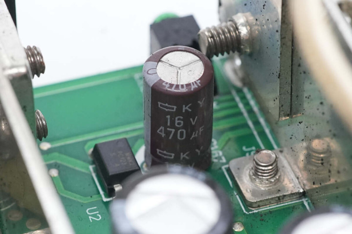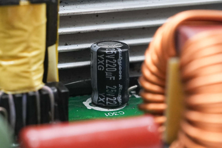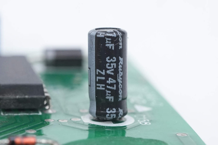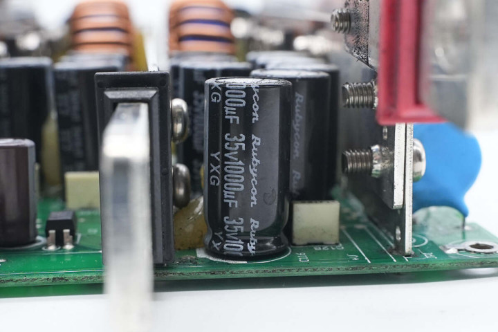 滤波电容来自红宝石,为YXG低阻电解电容,规格为35V1000μF。