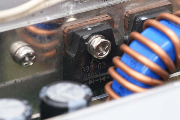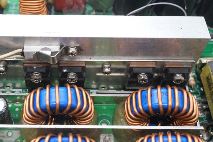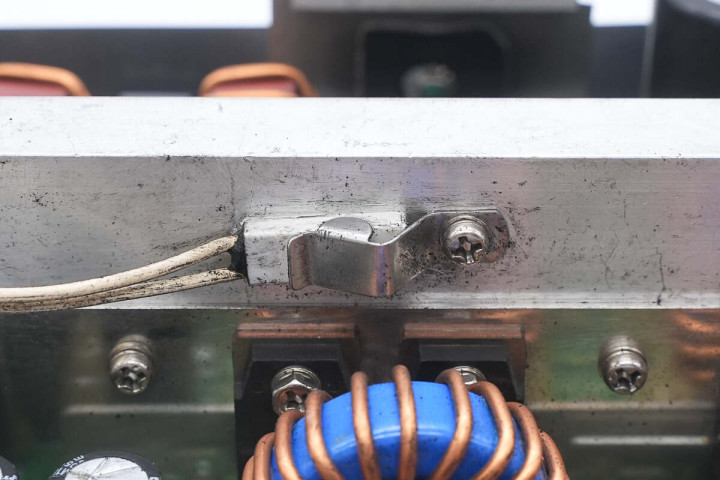 初级开关管使用螺丝固定在散热片上。