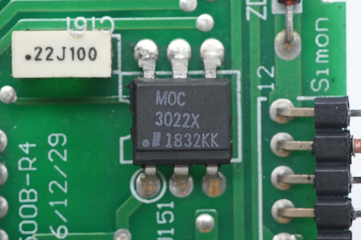 隔离光耦丝印MOC3022X。
