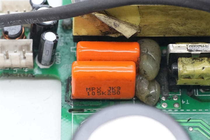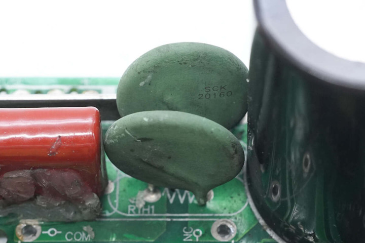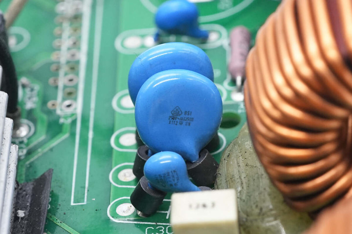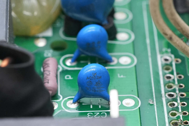 蓝色插件Y电容特写。