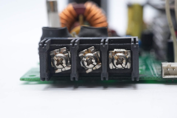 交流输入端接线端子特写。