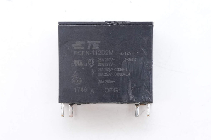 继电器来自泰科电子,型号PCFN-112D2M,触点容量为25A 250V,线圈电压为12V。