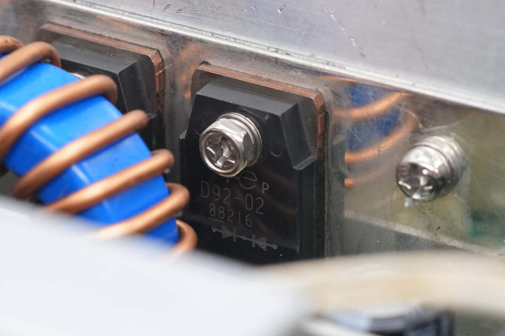 另一侧散热片也固定四颗整流管。