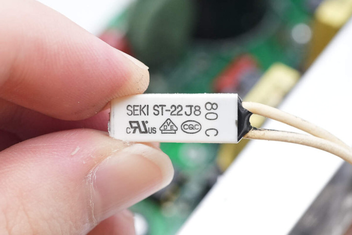 热保护器来自世纪公司,型号ST22,动作温度80℃,用于整流管温度保护。
