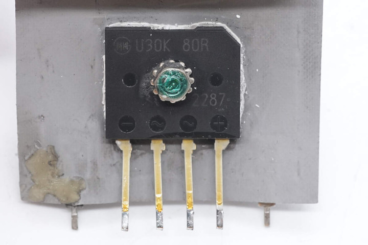 整流桥使用螺丝固定在散热片上。