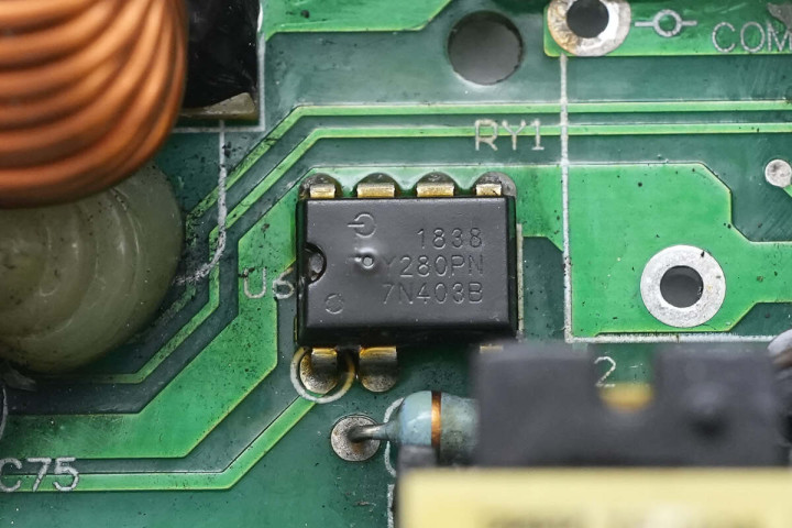 辅助电源芯片来自帕沃英蒂格盛,型号TNY280PN,为TinySwitch-3系列电源芯片,芯片内部集成开关管,采用DIP-8C封装。