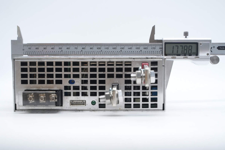 测得开关电源模块宽度约为177.9mm。