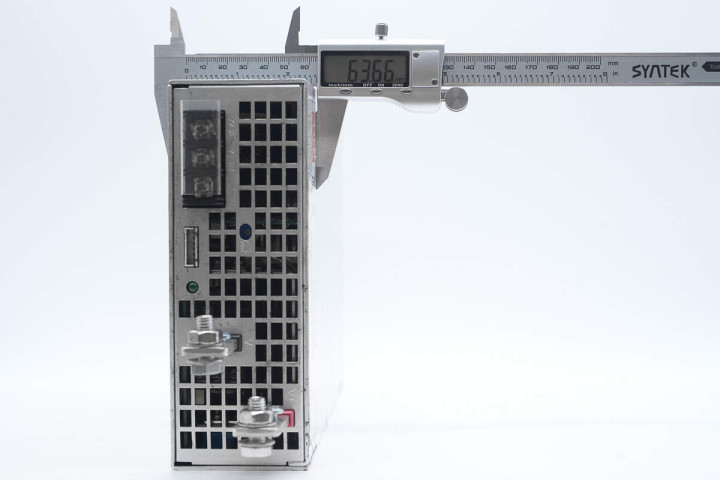 测得开关电源模块厚度约为63.7mm。