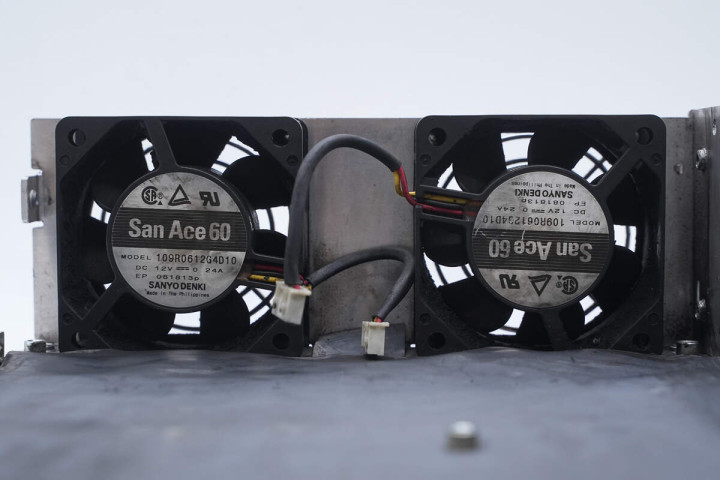 壳体内部两个散热风扇来自三洋,为San Ace 60系列,规格为12V 0.24A。